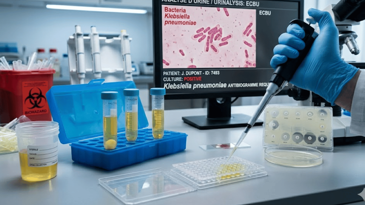 | ECBU | Analyser klebsiella pneumoniae dans l’urine | Numération et antibiogramme |